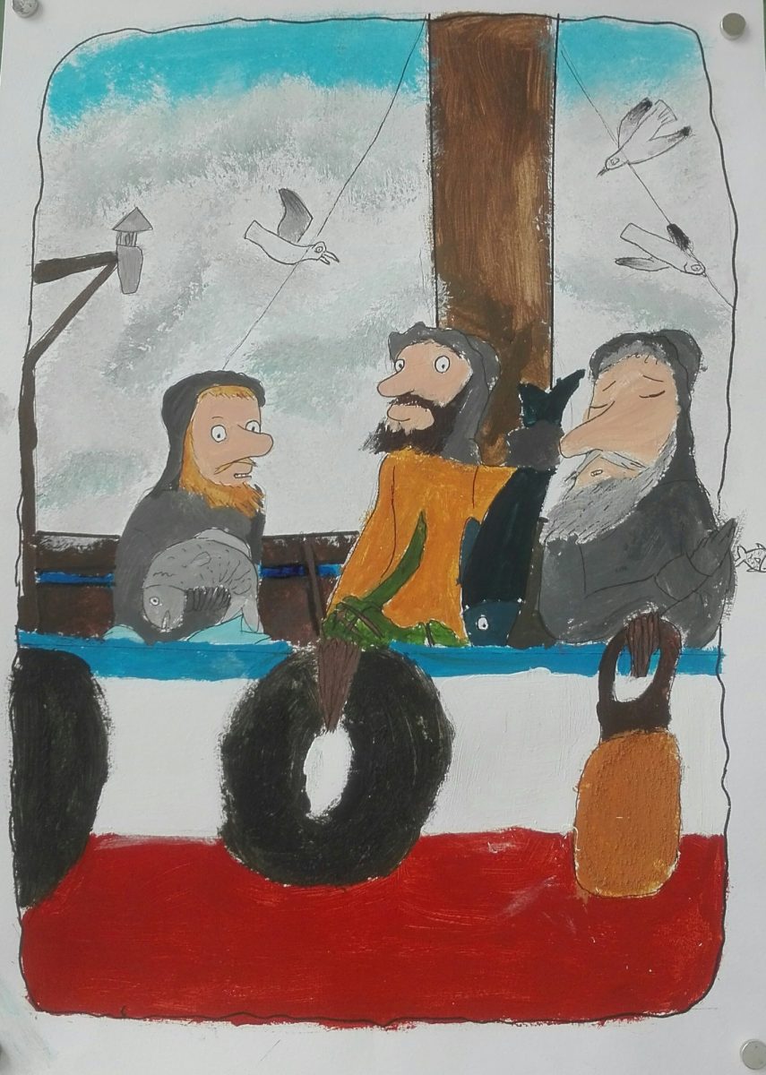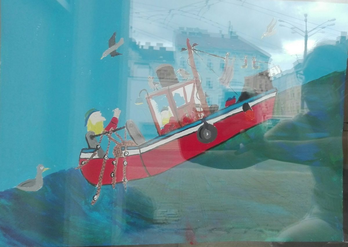 „Ach, das sind doch bloß Geschichten!“, sagen Spinnenfisch und Mondfisch. „Unverschämt, dass er uns mit solchen Märchen quält!“ „Mir gefällt es aber!“, sagt Peter Petersfisch, der Kleine und erzählt es seiner Oma, die’s gleich einem Butt erzählt. Und von dem hört es der Seestern und der sagt es dem Seehund, der’s dem Hummer sagt. Und der sagt es dem Aal zur selben Stund.